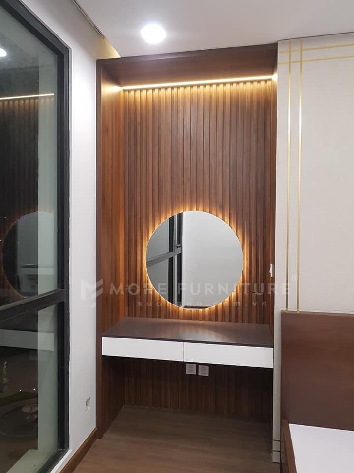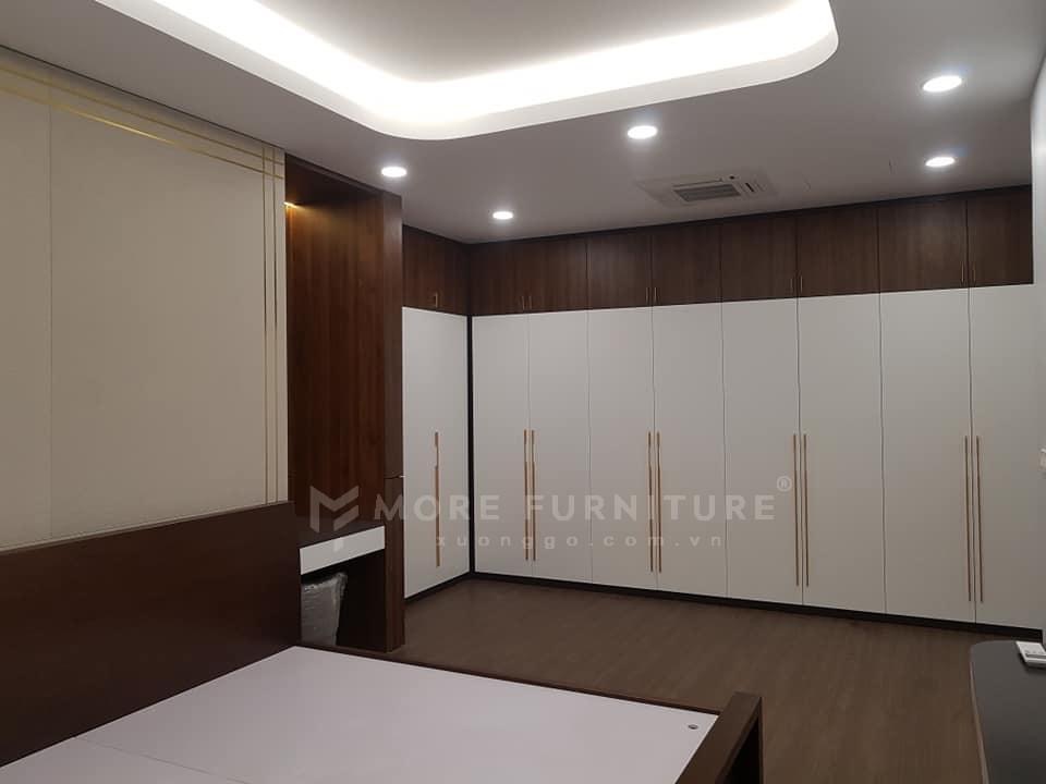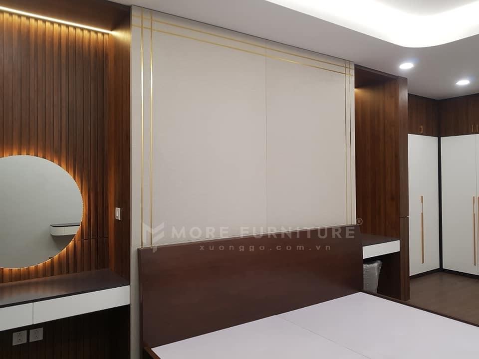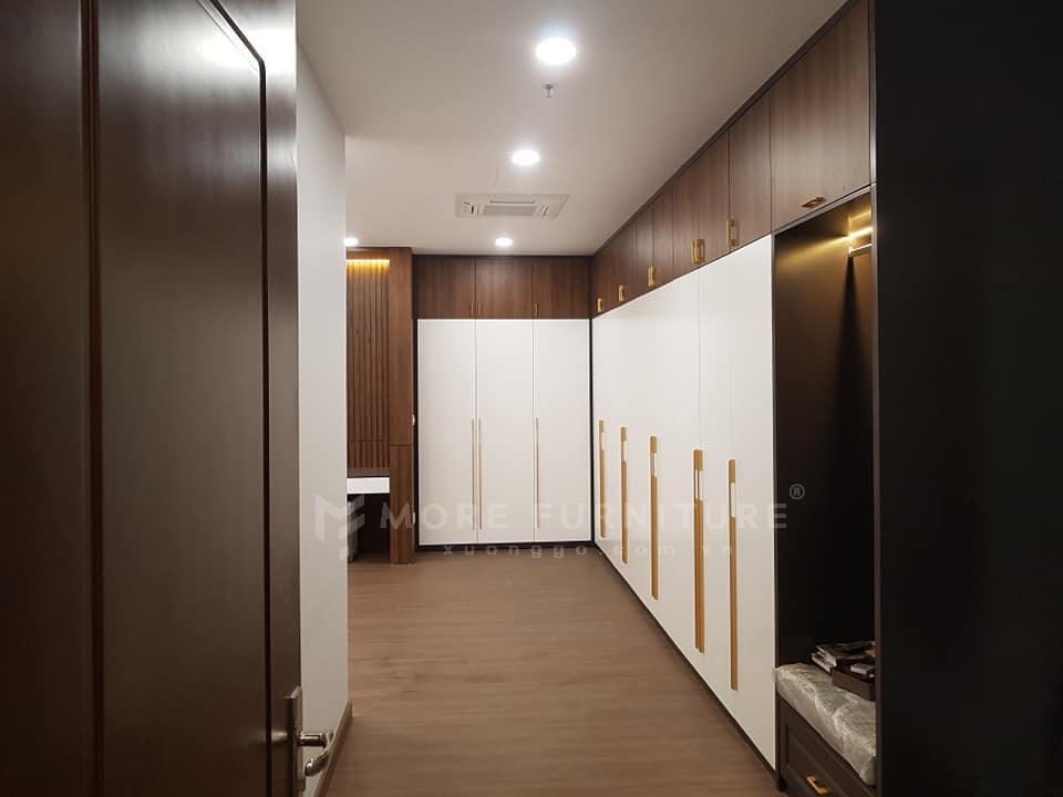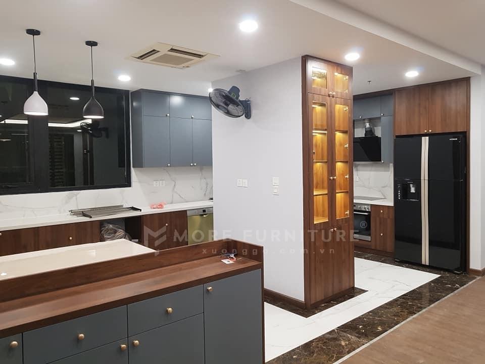 Chất liệu: gỗ MDF chống ẩm An Cường kết hợp Acrylic và Laminate An Cường, phụ kiện Hafele,....