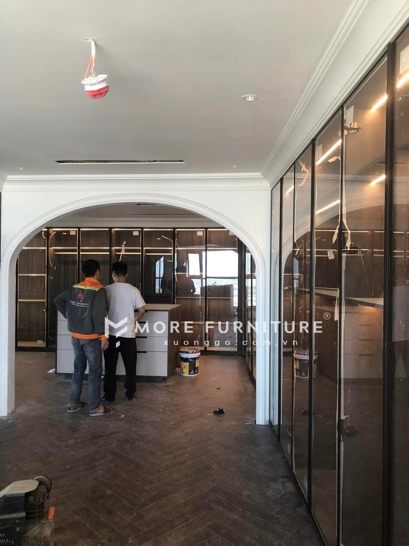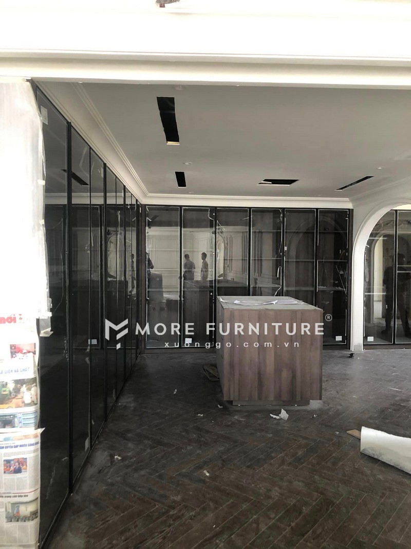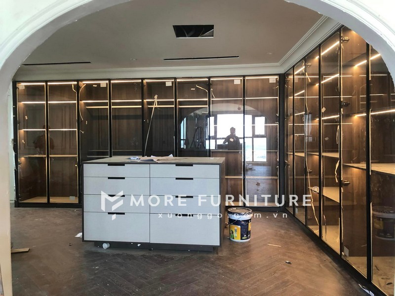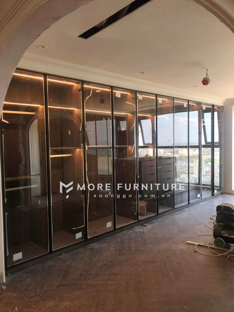 Đặc biệt, cánh tủ được làm từ khung nhôm và kính chất lượng, mang lại sự trong suốt và độ bóng bẩy đặc trưng. Điều này không chỉ tạo cảm giác không gian mở rộng mà còn làm tăng tính thẩm mỹ cho căn phòng của bạn.