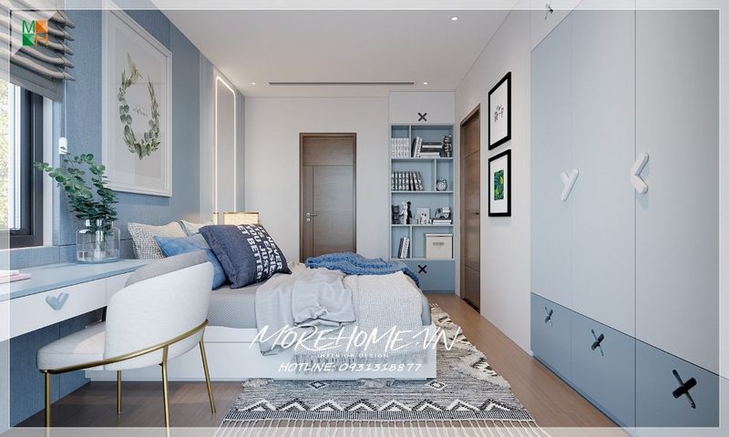 Gia chủ đã chọn mẫu cửa gỗ màu trắng để trang trí không gian phòng ngủ của họ.